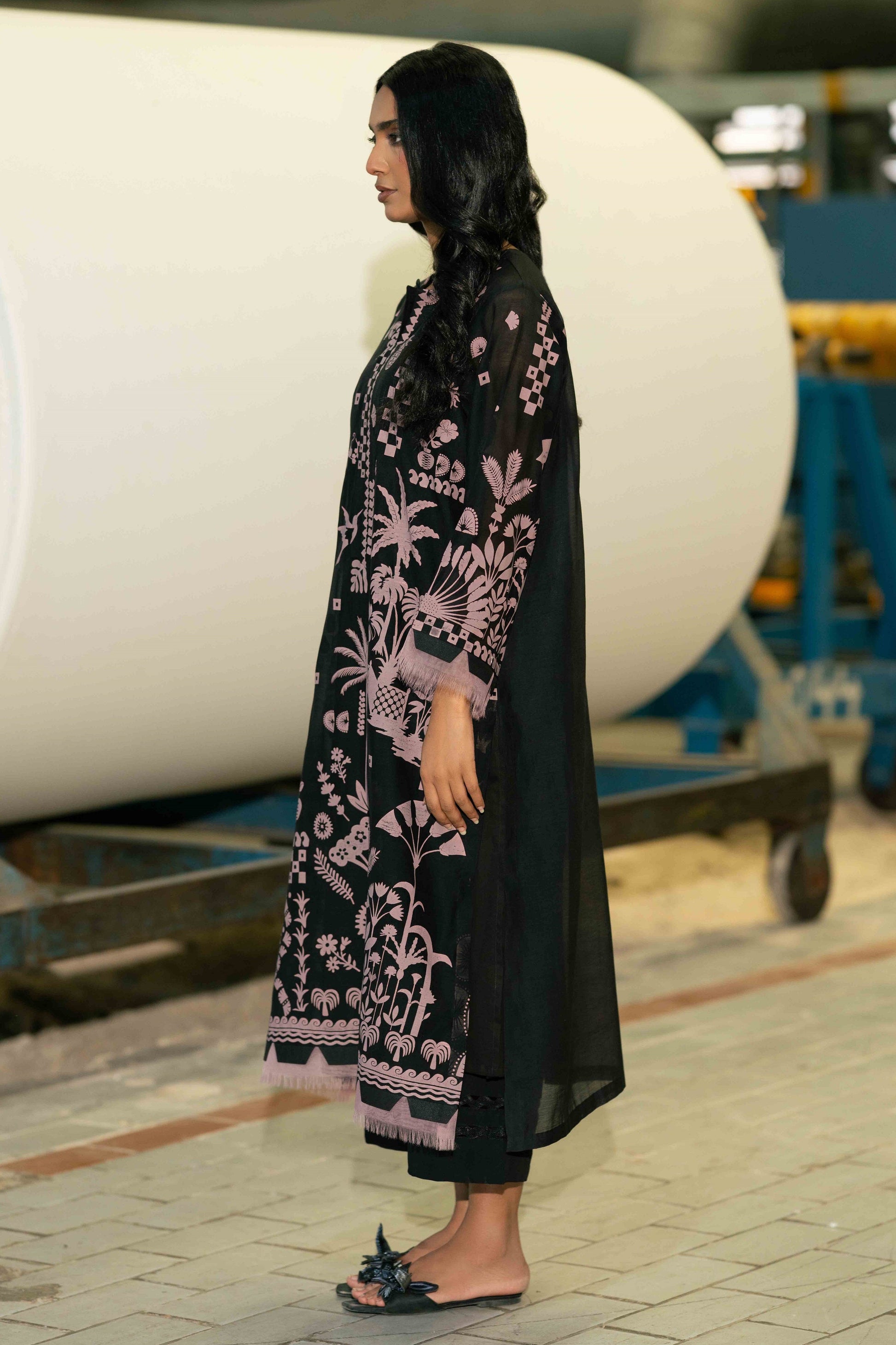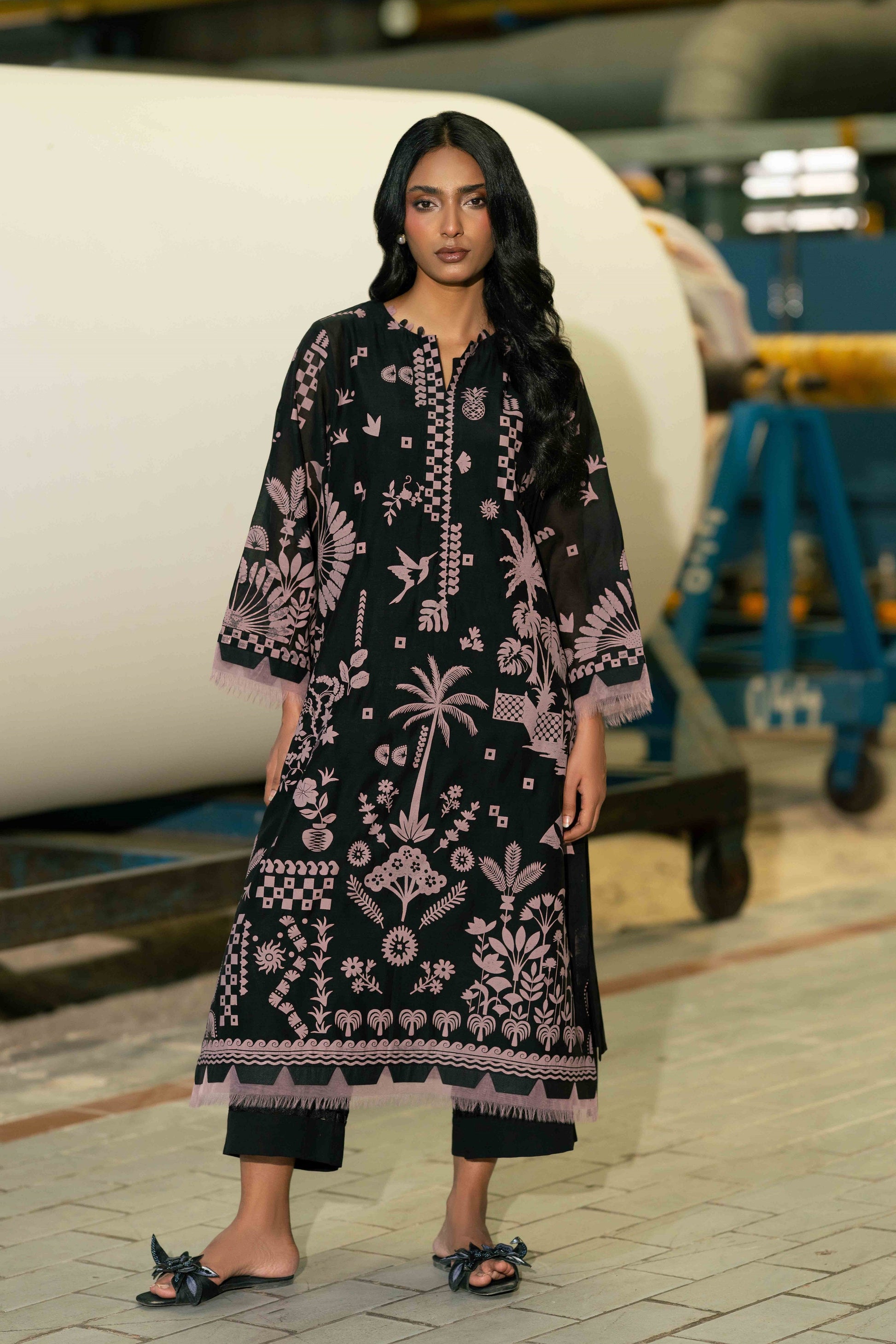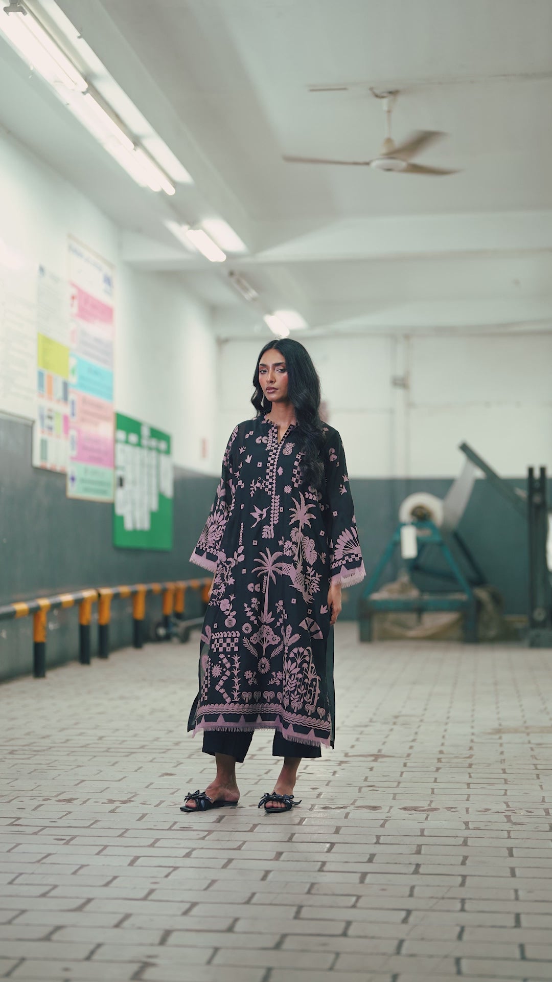 PENTALINE- Crafted from soft, breathable Cora cotton in a deep black hue, this screen-printed piece showcases striking printed patterns that give it modern character and visual appeal. The lightweight fabric keeps you comfortable throughout the day, while the printed design adds personality to your wardrobe.