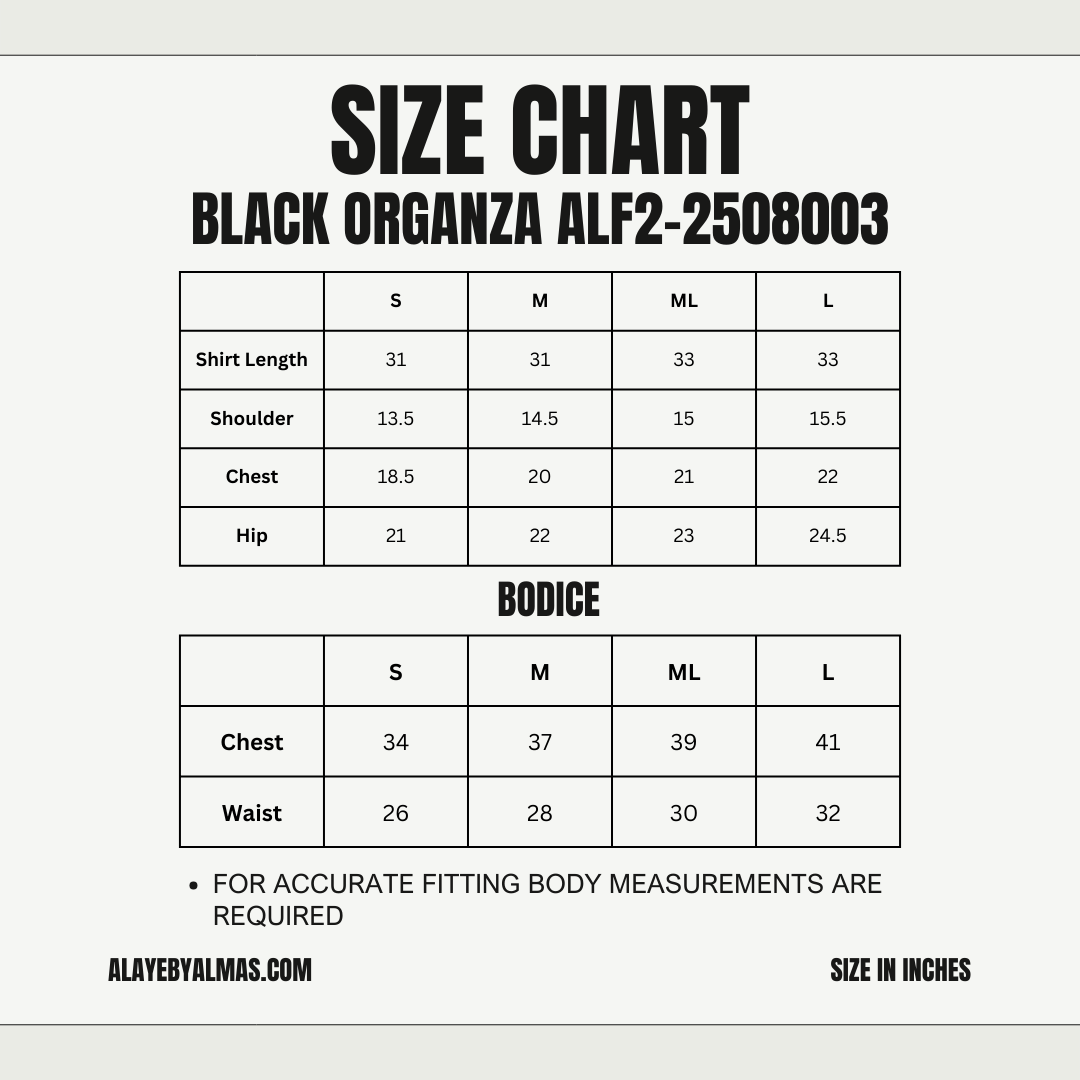 RELANA – Regal Black Perfection! This luxe two-piece ensemble blends Organza and Silk with dimensional Appliqué and rich Zardozi. A bold statement in timeless black.